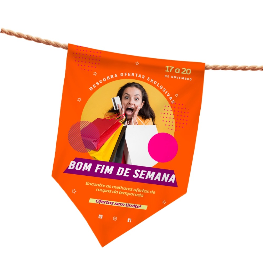Destaque suas promoções com bandeirolas personalizadas de alto impacto visual!
