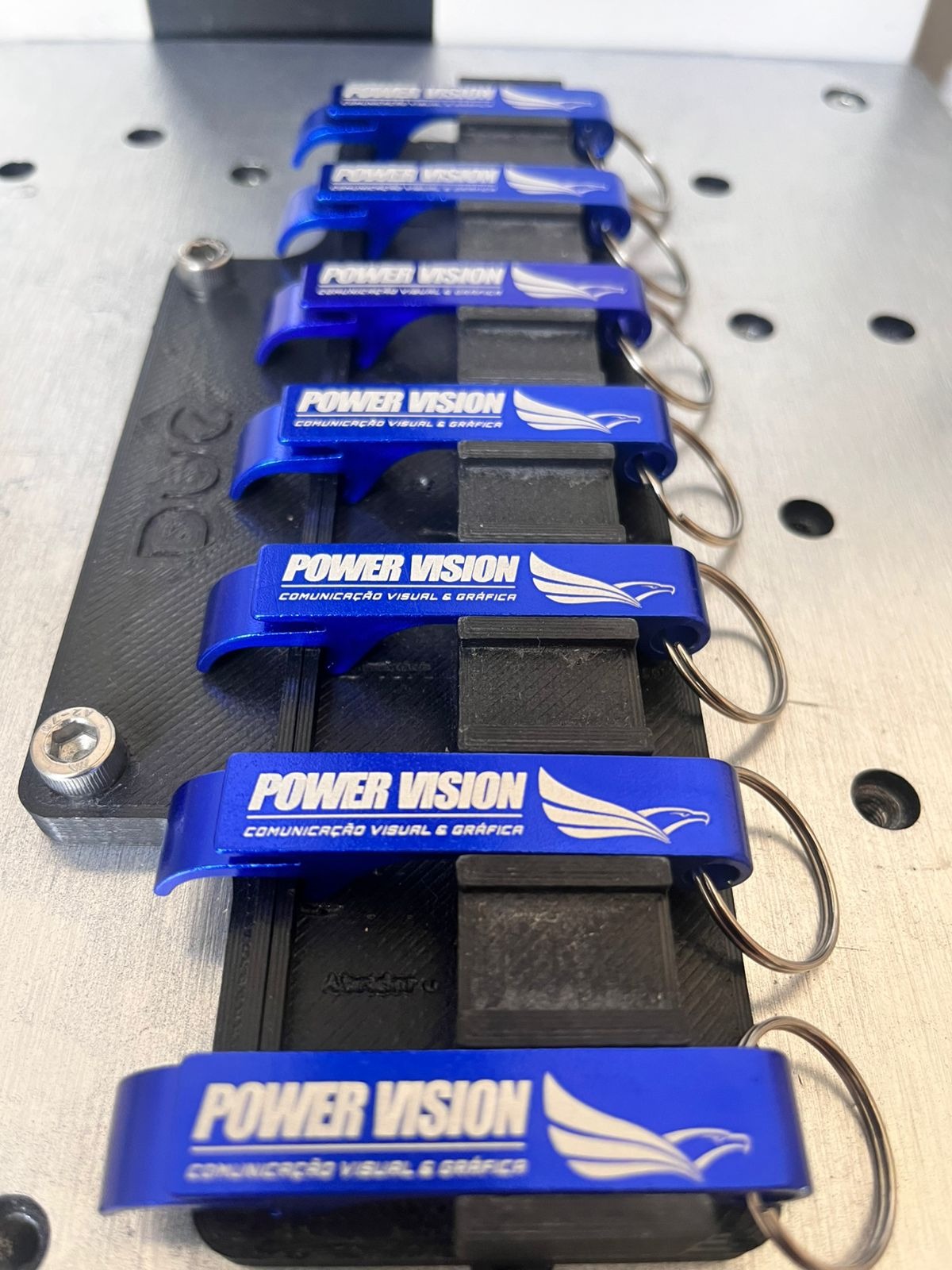 O chaveiro abridor Power Vision é fabricado em alumínio anodizado de alta resistência, com gravação a laser permanente — não desbota, não risca e garante uma aparência profissional por muito mais tempo.