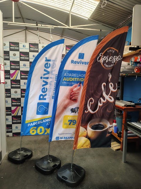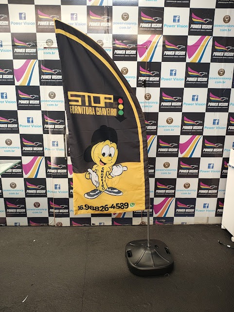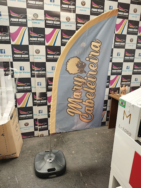 O Wind banner personalizada Power Vision é ideal para eventos, promoções, feiras e pontos comerciais, garantindo visibilidade e destaque mesmo à distância.